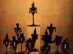 En las casas templo, se pueden ver los altares dedicados a cada orisha, así como los atributos, el vestuario, los pańos rituales y los alimentos y ofrendas de los fieles: